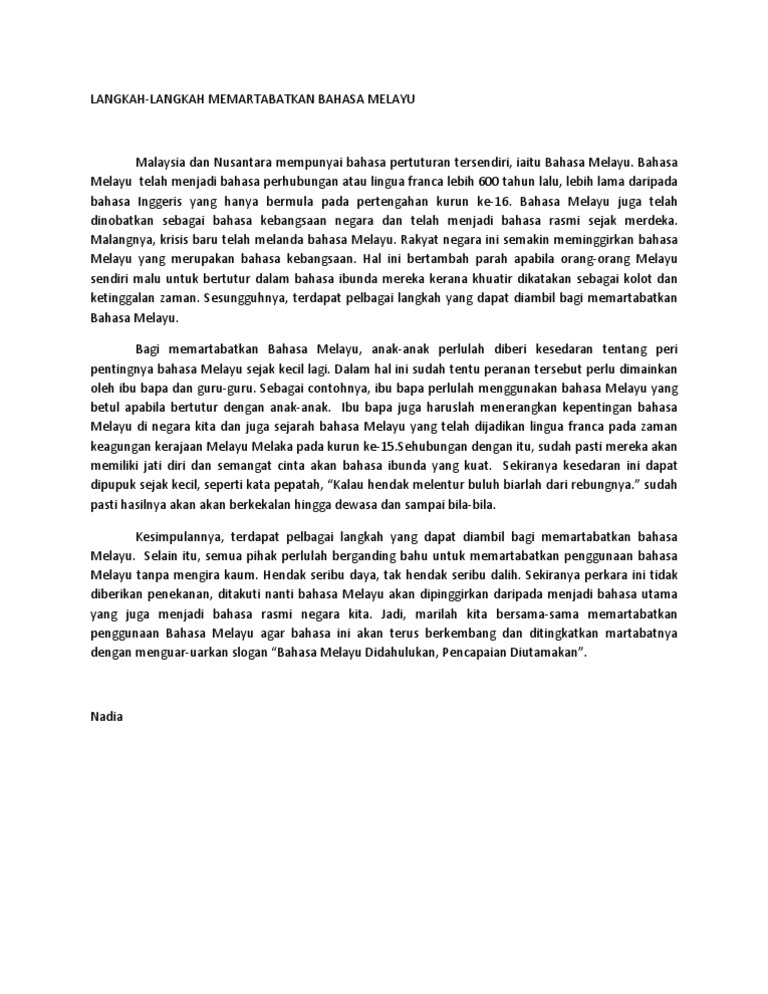 Karangan Bm Spm Langkah Langkah Memartabatkan Bahasa Melayu Pdf